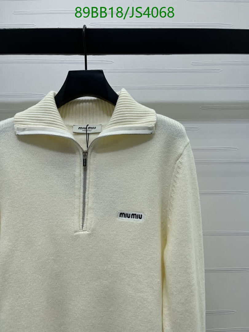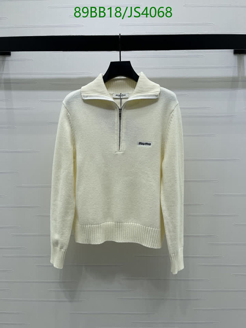 Stay cozy and chic with this Miu Miu wool sweater. Features a half-zip design and is available in sizes S, M, and L.