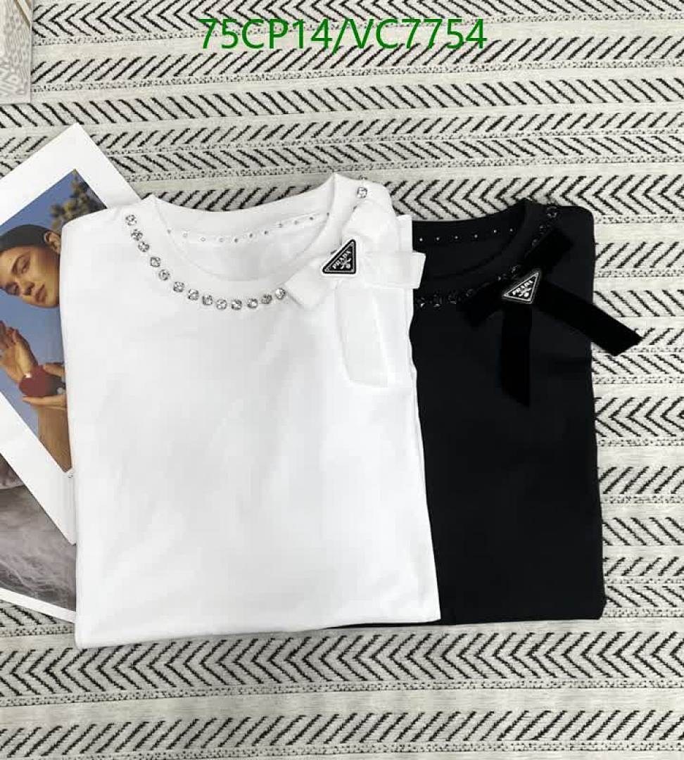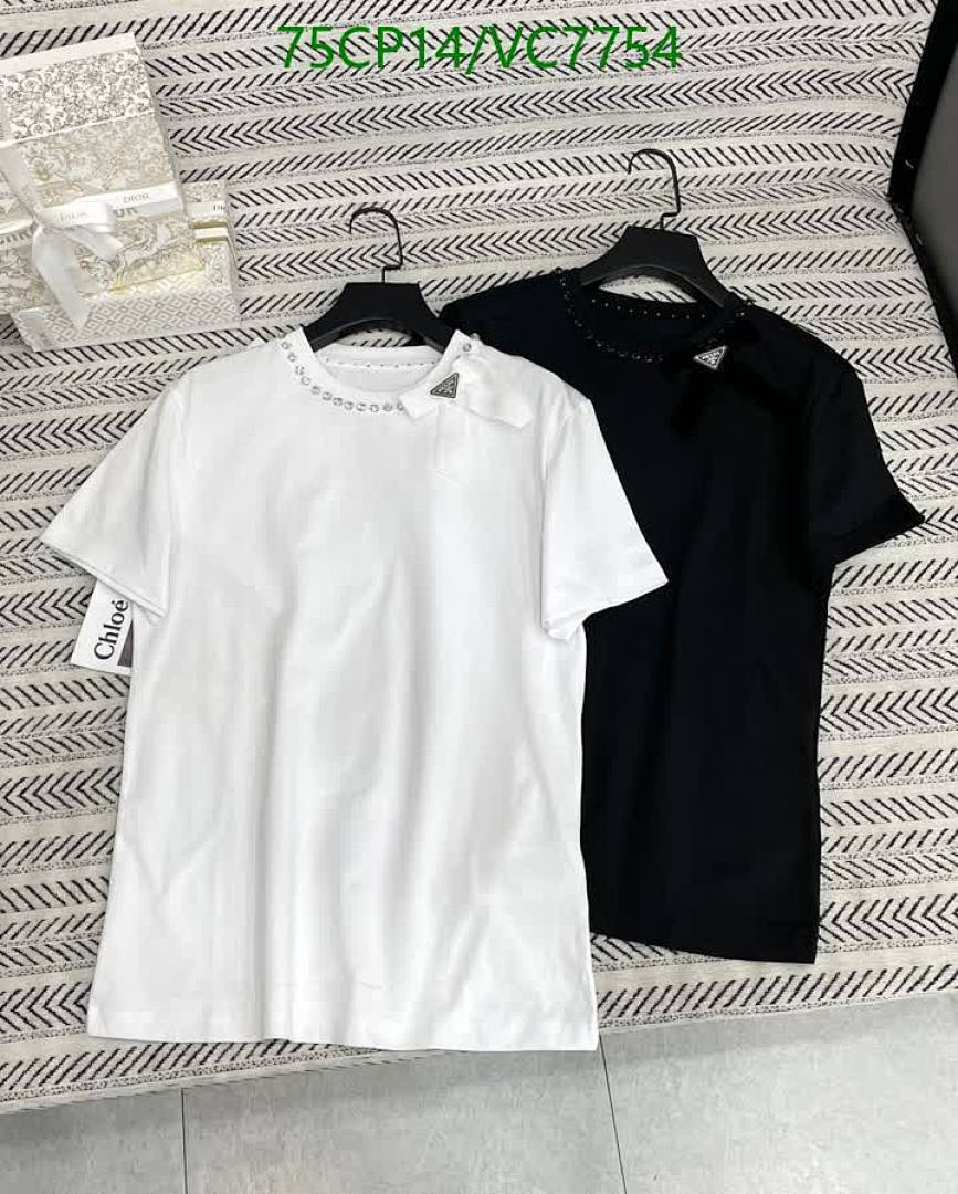 Prada Cotton T-Shirt with Embellished Neckline - Classic Black & White