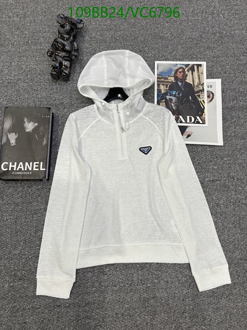 Tags: Cotton Nylon Blend Hoodie, Luxury Casual Wear, Prada Hooded Sweatshirt, Womens Half Zip Hoodie