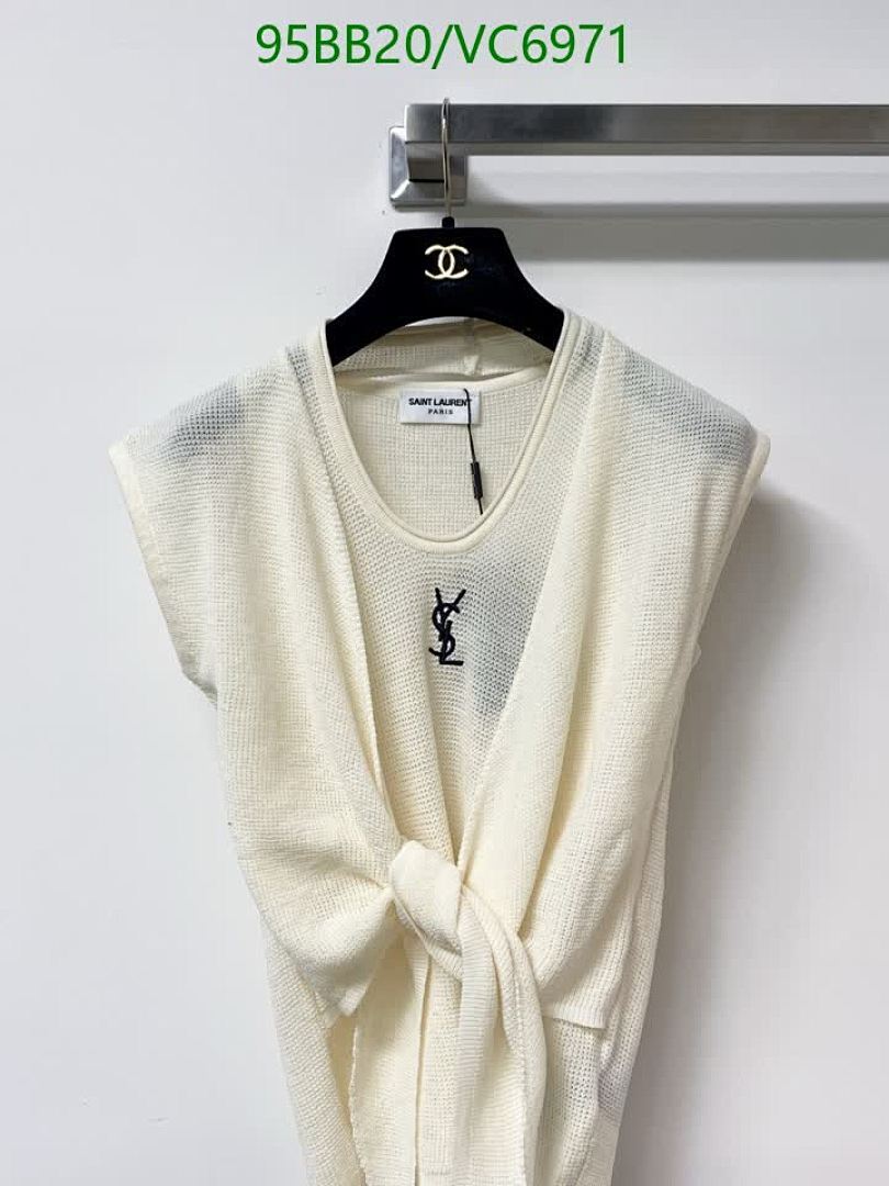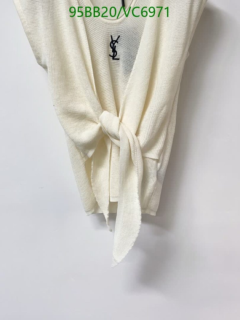 Elevate your wardrobe with this stylish Saint Laurent knitted sleeveless top. Crafted from comfortable material, it features a chic front tie detail and the iconic YSL logo, perfect for a sophisticated yet casual look. Available in multiple sizes.