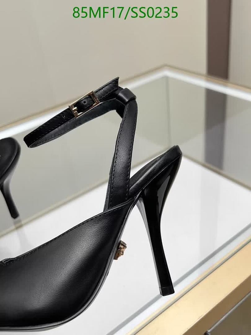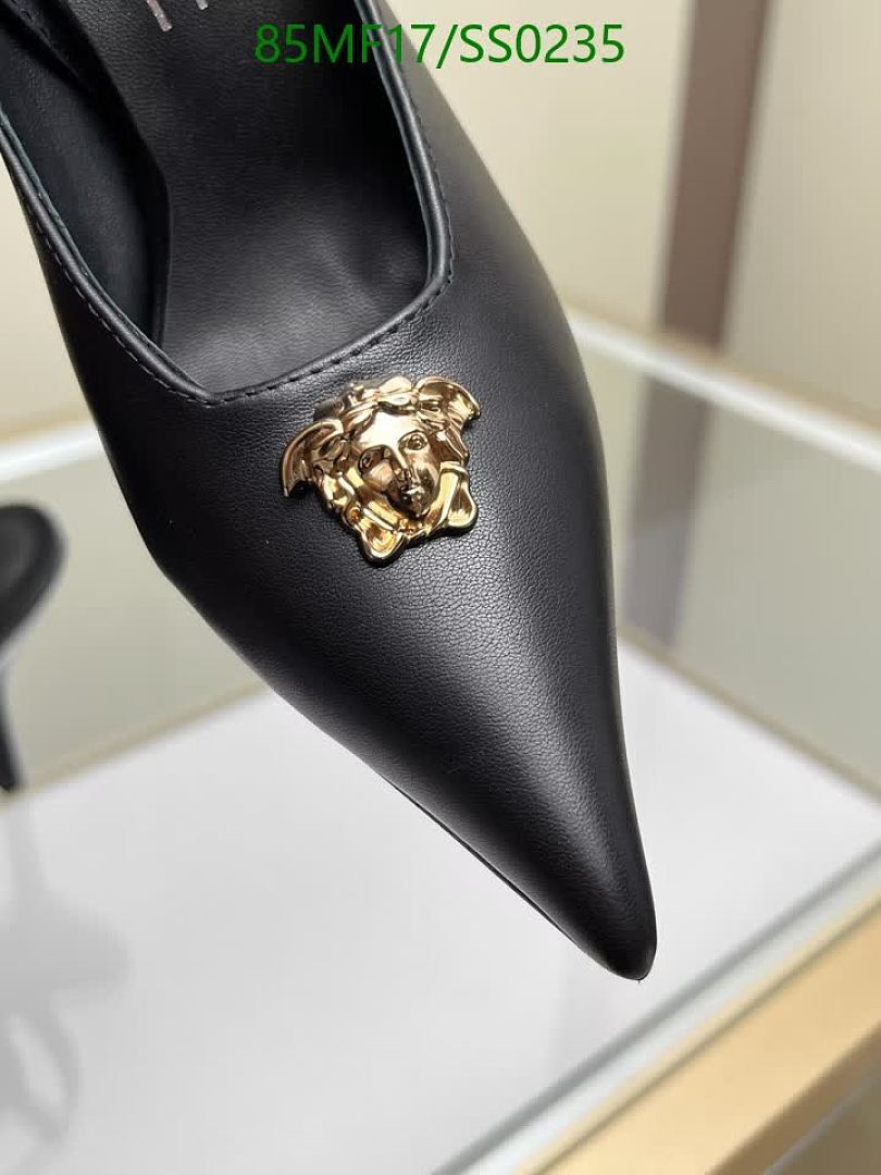 Tags: Designer High Heels, Luxury Women's Footwear, Medusa Head Embellished Heels, Versace Black Leather Heels, Women's Slingback Shoes
