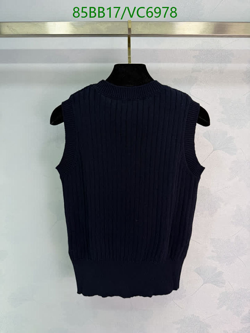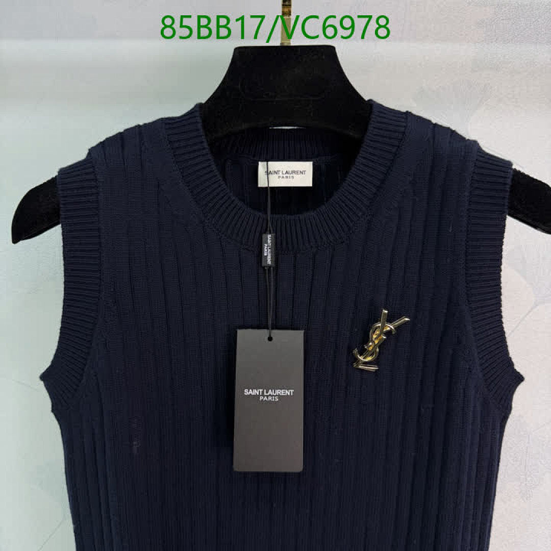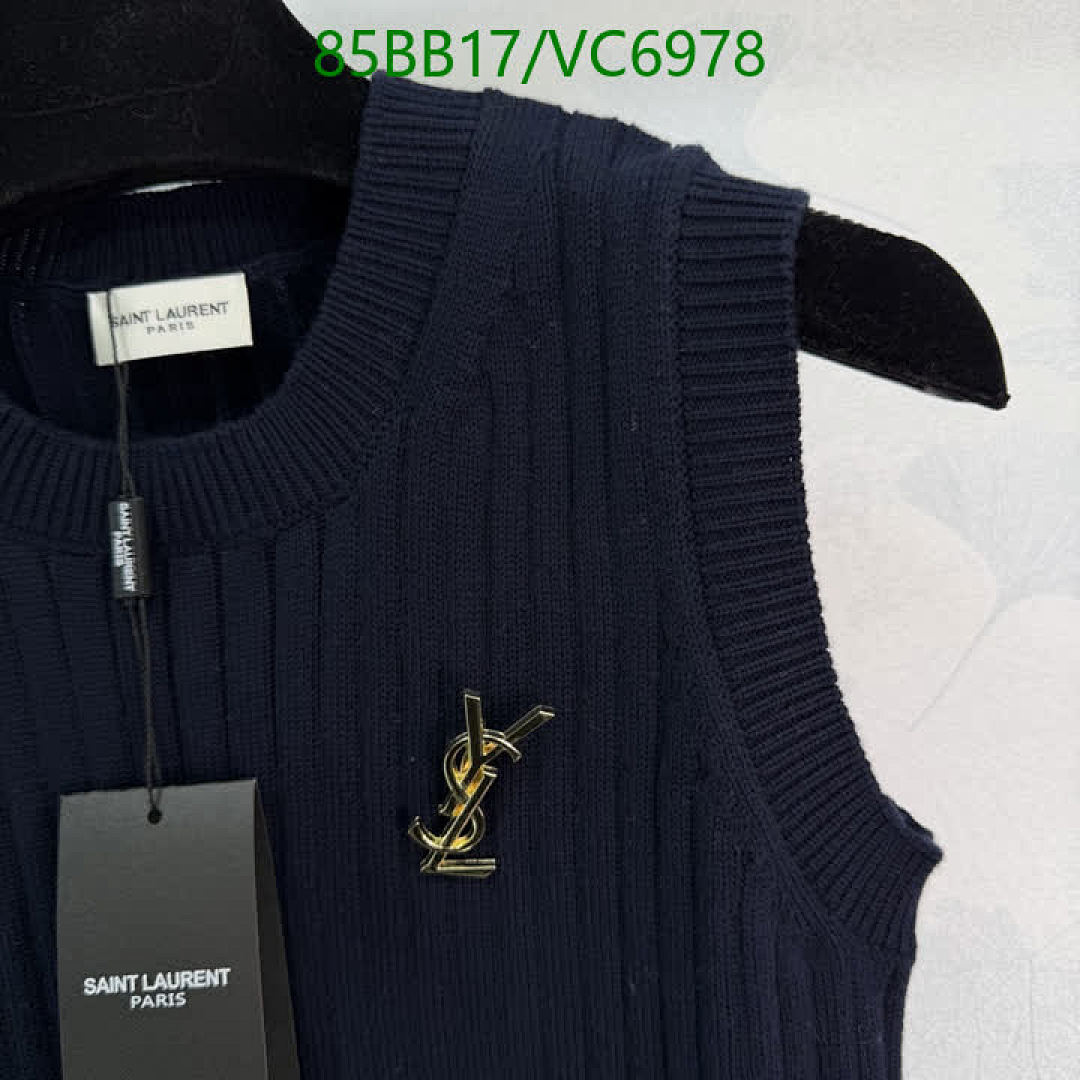 Tags: Designer Sleeveless Sweater, Luxury Knitwear Women, Ribbed Knit YSL Top, YSL Logo Pin Vest, Yves Saint Laurent Sleeveless Top