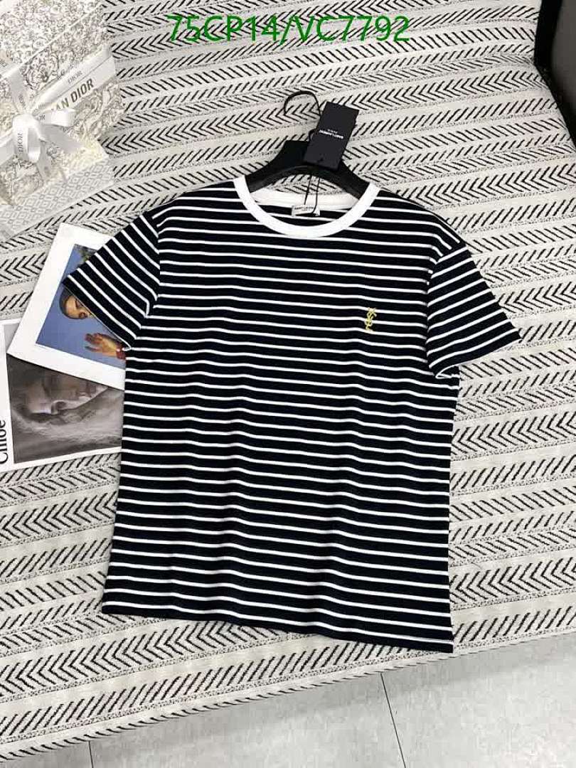Yves Saint Laurent Striped Cotton T-Shirt with YSL Logo - Classic & Comfortable